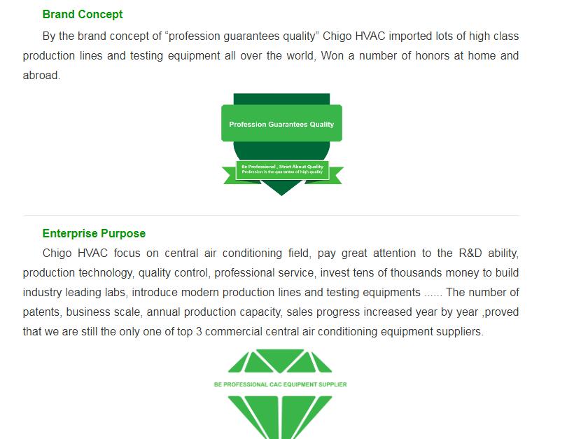 In 2011, the management team reorganized and established a new company-Guangdong Chigo Heating & Ventilation Equipment Co., Ltd.(short for GCHV), it is a professional commercial central air-conditioning equipment manufacturing and supply enterprise integrating R&D, testing,production, manufacturing, marketing, project design, sales and after sales service. Under the leadership of its Chairman Zhang Quan, GCHV has been steadily growing in the past 8 years.