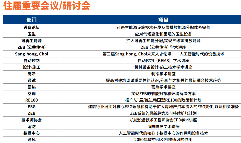 一年一屆的韓國國際暖通、空調(diào)制冷、管道、機(jī)械展覽會HVAC KOREA,該展覽會由韓國機(jī)械設(shè)備建設(shè)協(xié)會,韓國設(shè)備工學(xué)會,韓國設(shè)備技術(shù)協(xié)會,韓國設(shè)備設(shè)計(jì)協(xié)會,韓國機(jī)械設(shè)備技術(shù)工程師協(xié)會主 辦,LH(韓國土地住宅公社),韓國綜合建設(shè)機(jī)械設(shè)備協(xié)會和機(jī)械工程師協(xié)會贊助,并組織展館構(gòu)建,舉辦會議/研討會,以及 為機(jī)械設(shè)備專業(yè)人士舉辦交流招待會,是韓國唯一一個綜合性的暖通空調(diào)和管道展覽會,展示了從暖通空調(diào)系統(tǒng)、儲罐和泵到管道的全系列機(jī)械系統(tǒng),閥門、消防/衛(wèi)生/特種設(shè)備、數(shù)據(jù)中心等。這是一個獨(dú)特的暖通空調(diào)和管道行業(yè)的主要參與者聚集在一起展覽的平臺,網(wǎng)絡(luò),塑造該領(lǐng)域的未來。我們邀請您參加韓國首屈一指的展覽暖通空調(diào)專業(yè)人士!今年為第11屆.它引領(lǐng)機(jī)械設(shè)備行業(yè)最新技術(shù)和趨勢,匯聚眾多行業(yè)專家,此展將成為貴公司發(fā)展的基石